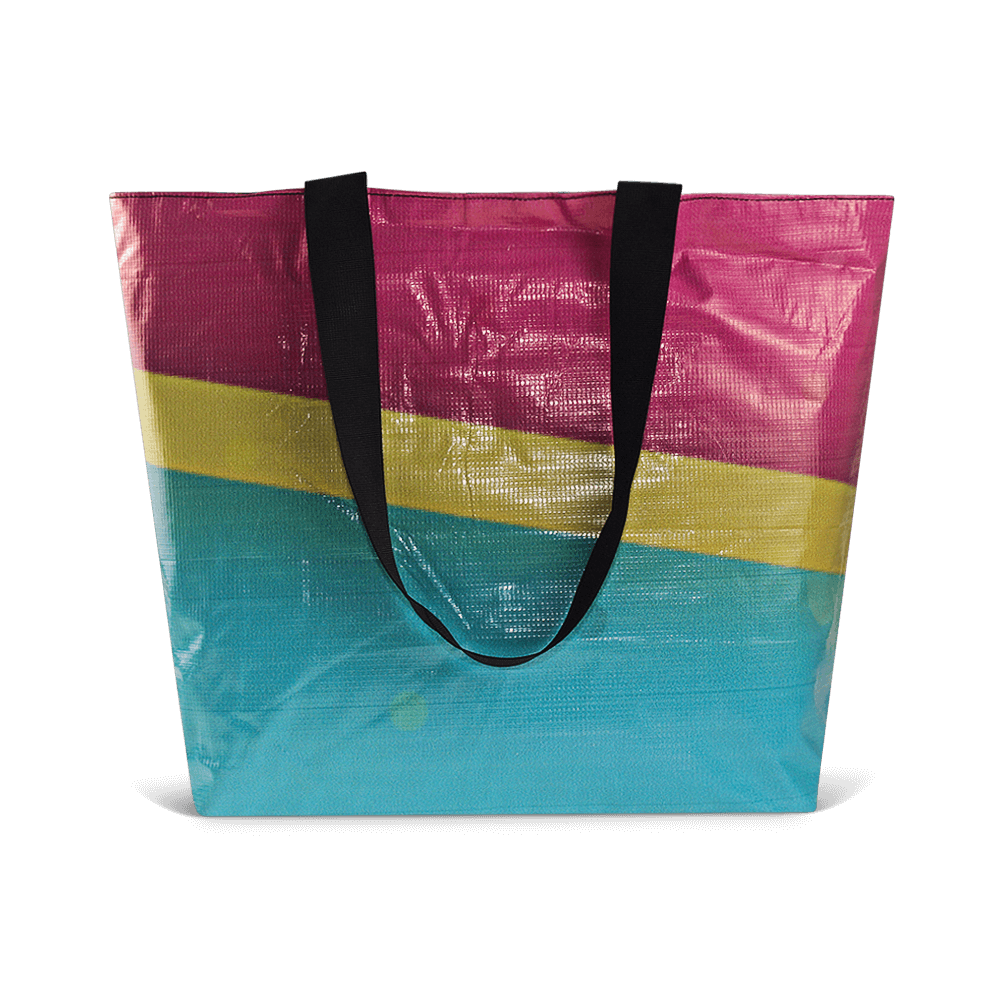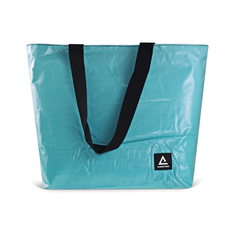 Our high volume Blake Tote bag is spacious enough for daily essentials and perfect for the beach or farmer's market. The exterior of the bag is made from 100% repurposed billboard vinyl that is water resistant, lightweight, and easy to clean.