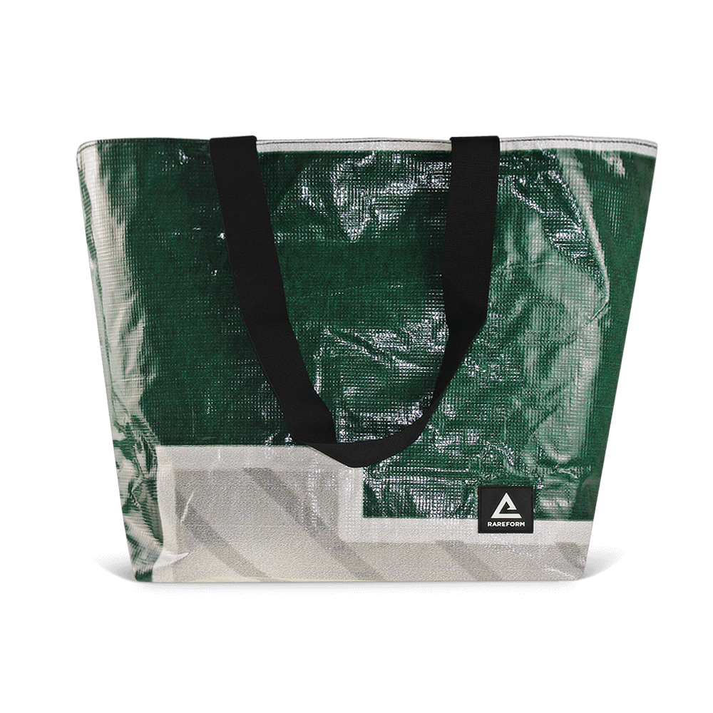 Our high volume Blake Tote bag is spacious enough for daily essentials and perfect for the beach or farmer's market. The exterior of the bag is made from 100% repurposed billboard vinyl that is water resistant, lightweight, and easy to clean.