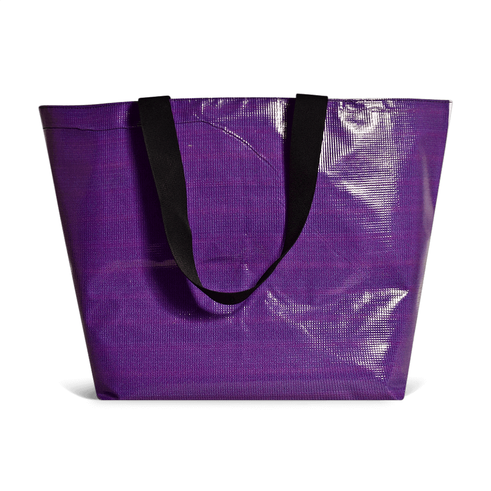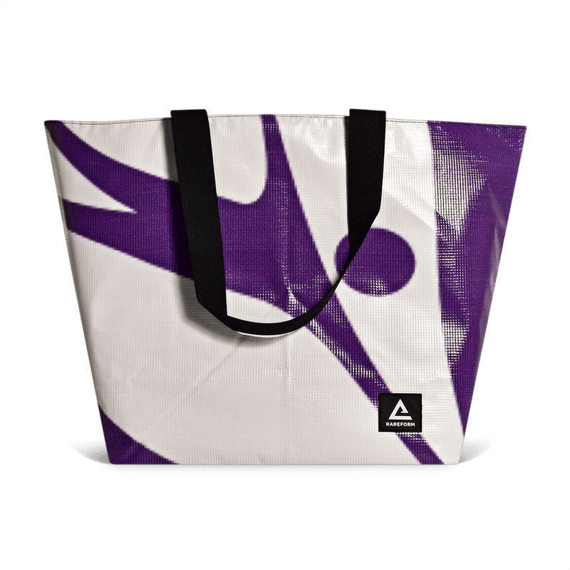 Our high volume Blake Tote bag is spacious enough for daily essentials and perfect for the beach or farmer's market. The exterior of the bag is made from 100% repurposed billboard vinyl that is water resistant, lightweight, and easy to clean.