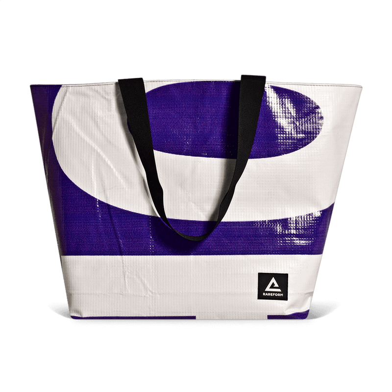 Our high volume Blake Tote bag is spacious enough for daily essentials and perfect for the beach or farmer's market. The exterior of the bag is made from 100% repurposed billboard vinyl that is water resistant, lightweight, and easy to clean.