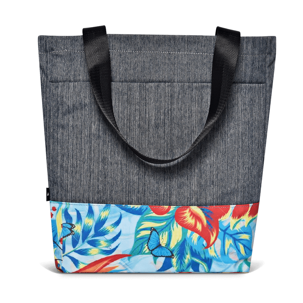 This Cora Tote Bag is designed to be timeless yet bold. We have combined repurposed billboard material with a durable heathered body fabric to provide the perfect bag for both your technology and everyday excursions. This Cora Tote comes with a removable shoulder strap for easy carrying and extra wide opening for easy packing. The inside has a full-quilted padded laptop sleeve that fits up to a 13’’ MacBook Pro and easy access stash pockets.