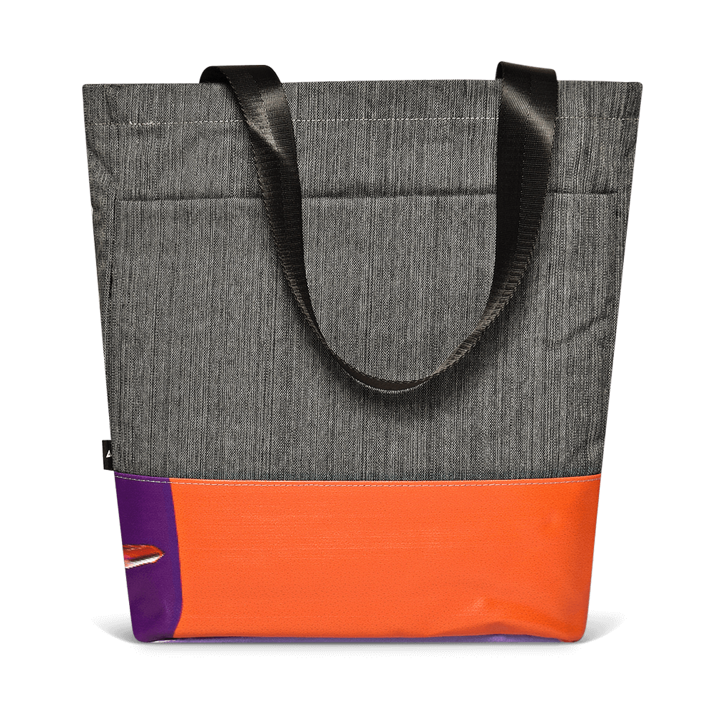 This Cora Tote Bag is designed to be timeless yet bold. We have combined repurposed billboard material with a durable heathered body fabric to provide the perfect bag for both your technology and everyday excursions. This Cora Tote comes with a removable shoulder strap for easy carrying and extra wide opening for easy packing. The inside has a full-quilted padded laptop sleeve that fits up to a 13’’ MacBook Pro and easy access stash pockets.