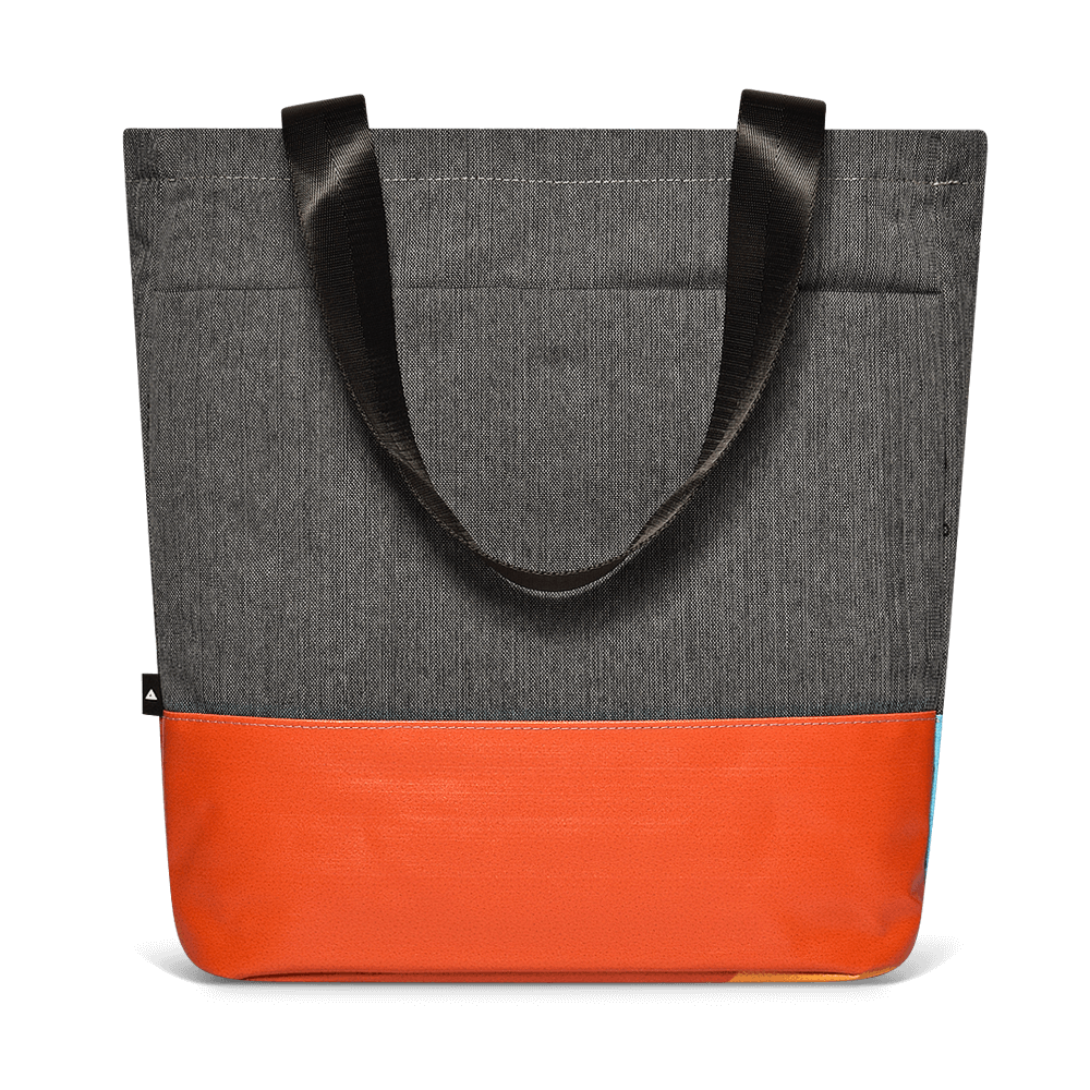 This Cora Tote Bag is designed to be timeless yet bold. We have combined repurposed billboard material with a durable heathered body fabric to provide the perfect bag for both your technology and everyday excursions. This Cora Tote comes with a removable shoulder strap for easy carrying and extra wide opening for easy packing. The inside has a full-quilted padded laptop sleeve that fits up to a 13’’ MacBook Pro and easy access stash pockets.