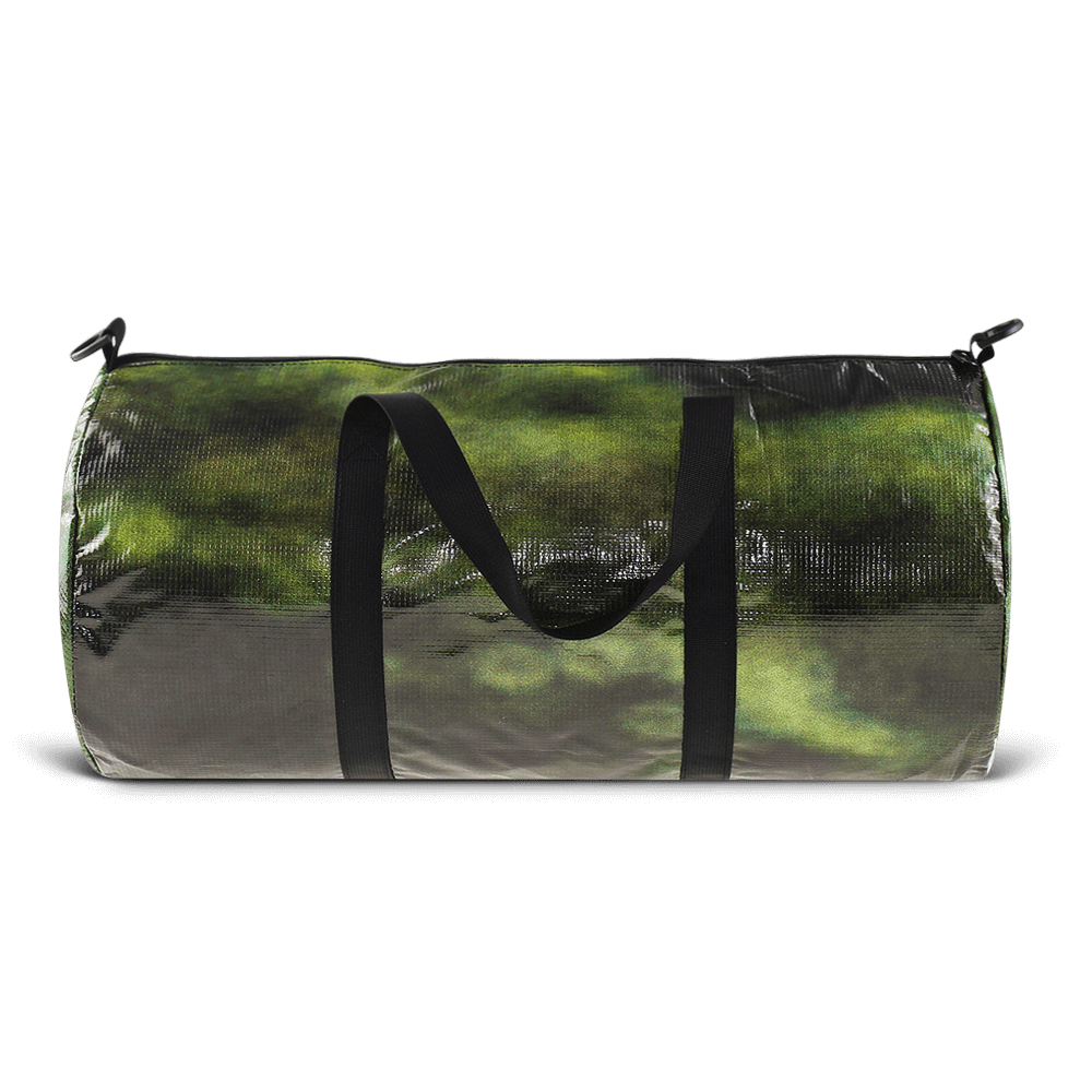 Inspired by the short day trip, the Light Duffle is constructed using repurposed billboard vinyl for the exterior and lined with a grey nylon pack cloth. The bag is water resistant, versatile, and durable for everyday use. With short carrying handles or a comfortable shoulder strap it's the perfect grab and go bag.