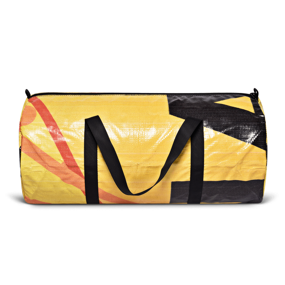 Inspired by the short day trip, the Light Duffle is constructed using repurposed billboard vinyl for the exterior and lined with a grey nylon pack cloth. The bag is water resistant, versatile, and durable for everyday use.