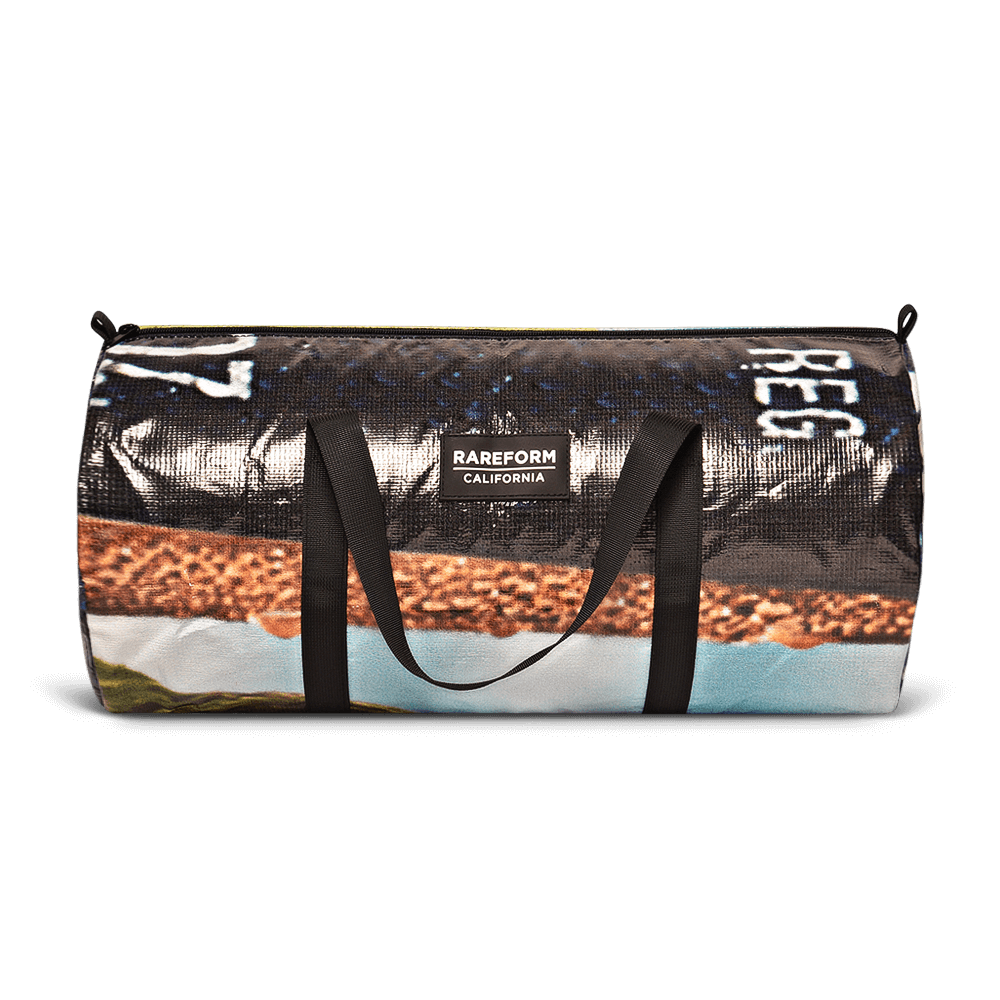 Inspired by the short day trip, the Light Duffle is constructed using repurposed billboard vinyl for the exterior and lined with a grey nylon pack cloth. The bag is water resistant, versatile, and durable for everyday use.