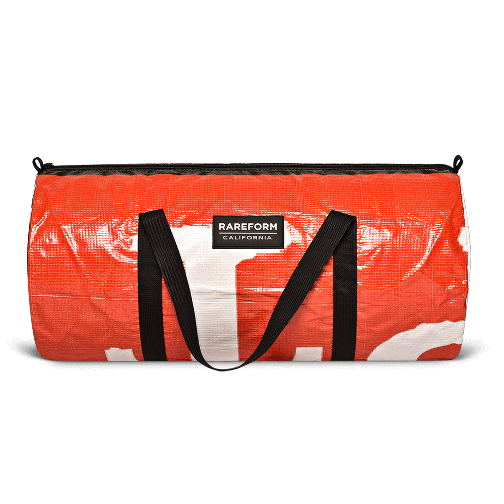 Inspired by the short day trip, the Light Duffle is constructed using repurposed billboard vinyl for the exterior and lined with a grey nylon pack cloth. The bag is water resistant, versatile, and durable for everyday use.