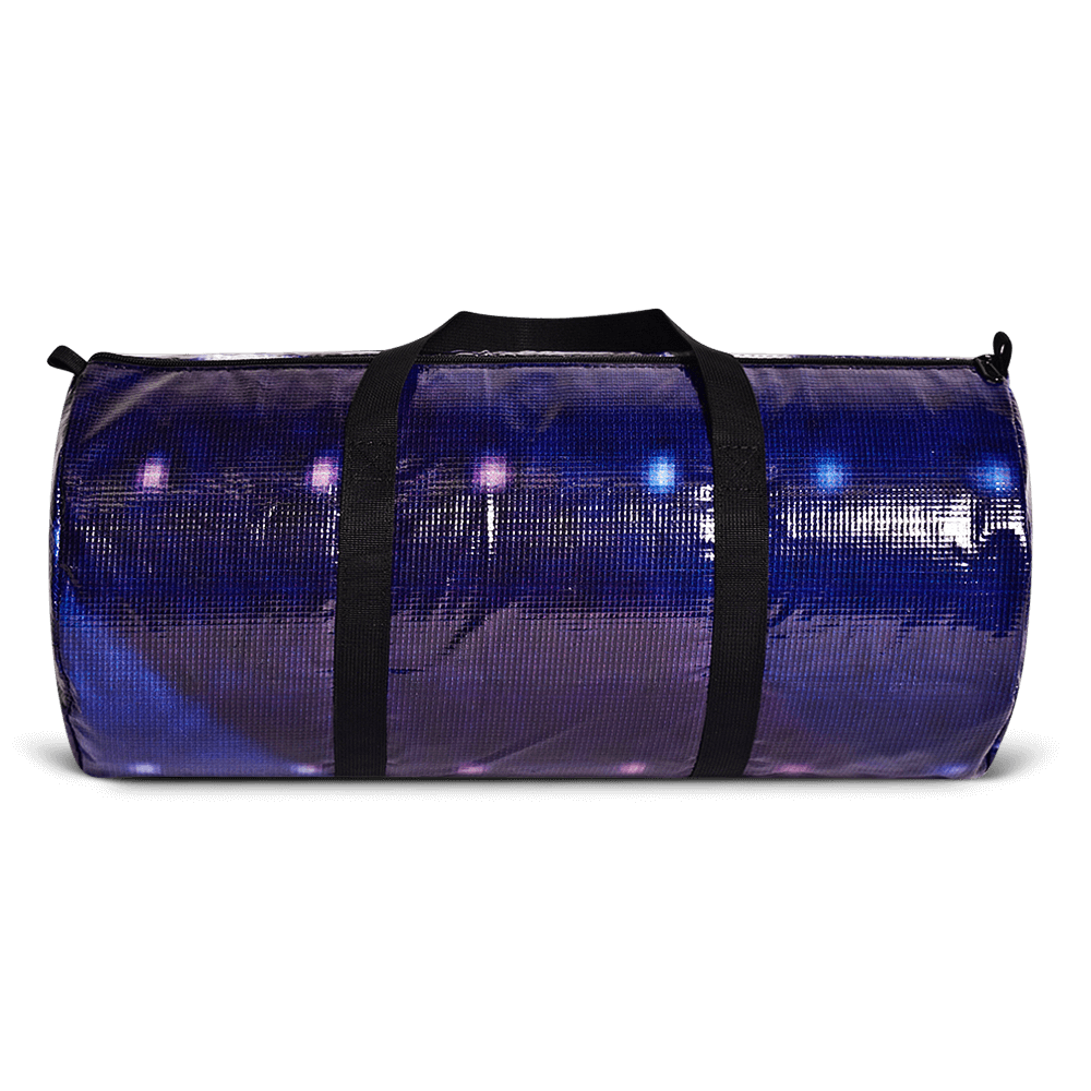 Inspired by the short day trip, the Light Duffle is constructed using repurposed billboard vinyl for the exterior and lined with a grey nylon pack cloth. The bag is water resistant, versatile, and durable for everyday use.