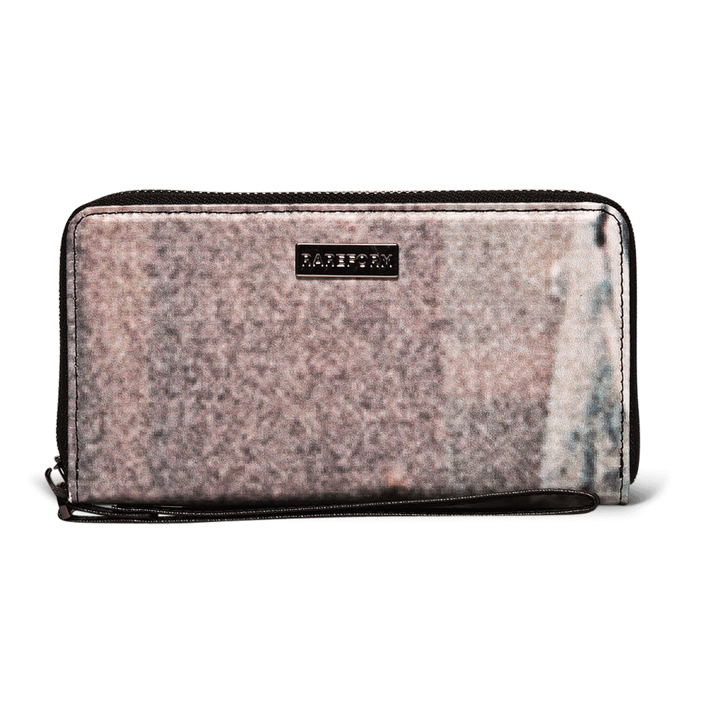 With its slim silhouette, metal etched logo plaque, and one-of-a-kind billboard design, the Madison Wristlet wallet is a must-have.  The perfect wallet for weekends, night outs, and those times when you need just the essentials, with room for your iPhone, cards, and cash.