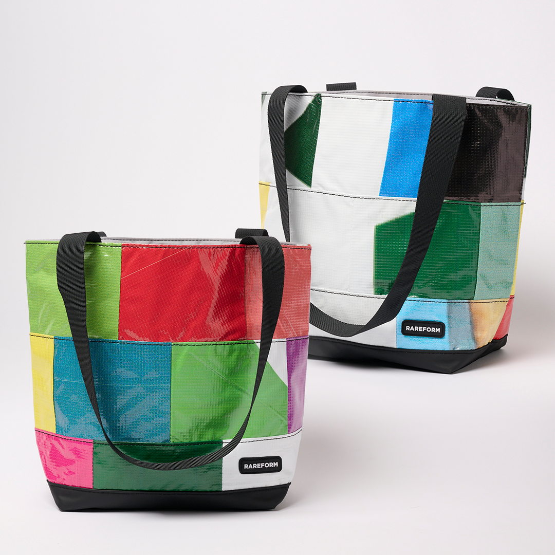 The Patchwork Collection: Each bag is stitched together using scraps of our remnant material for an end result that's ultra-colorful and truly one-of-a-kind. Each bag has a unique combination of colorful billboard patches.