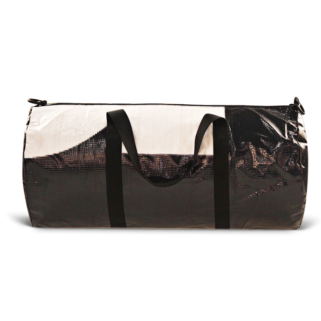 Inspired by the short day trip, the Mini Weekender Duffle is constructed using repurposed billboard vinyl for the exterior and lined with a grey nylon pack cloth. The bag is water resistant, versatile, and durable for everyday use. With short carrying handles or a comfortable shoulder strap it's the perfect grab and go bag.